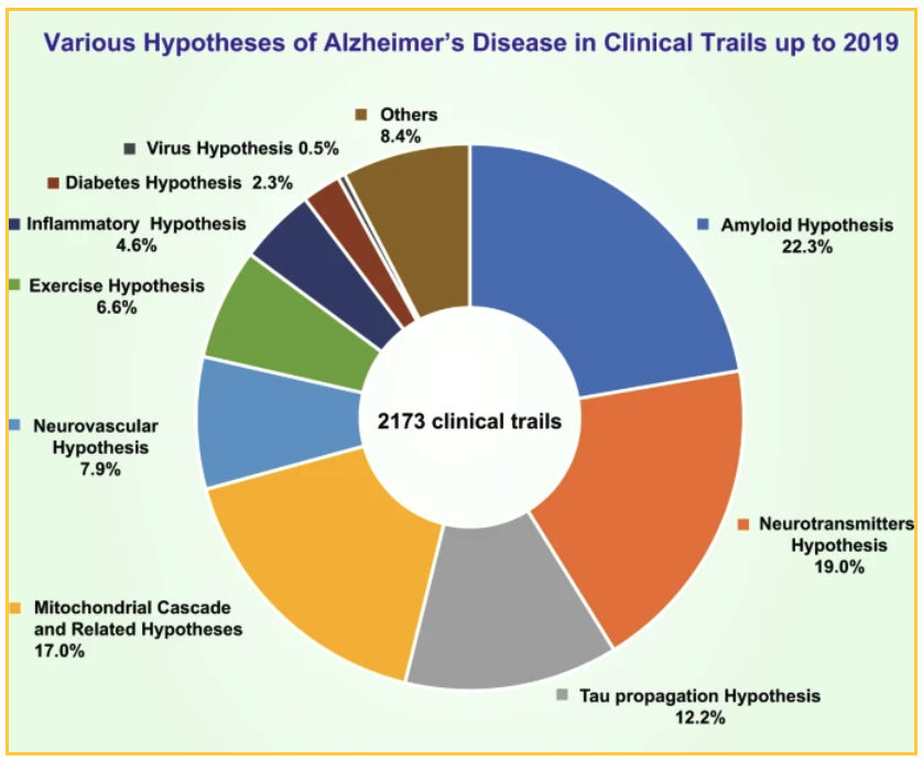 National and private funding has resulted in 2173 clinical trials that have been conducted by 2019 to test various theories. The top theories tested: