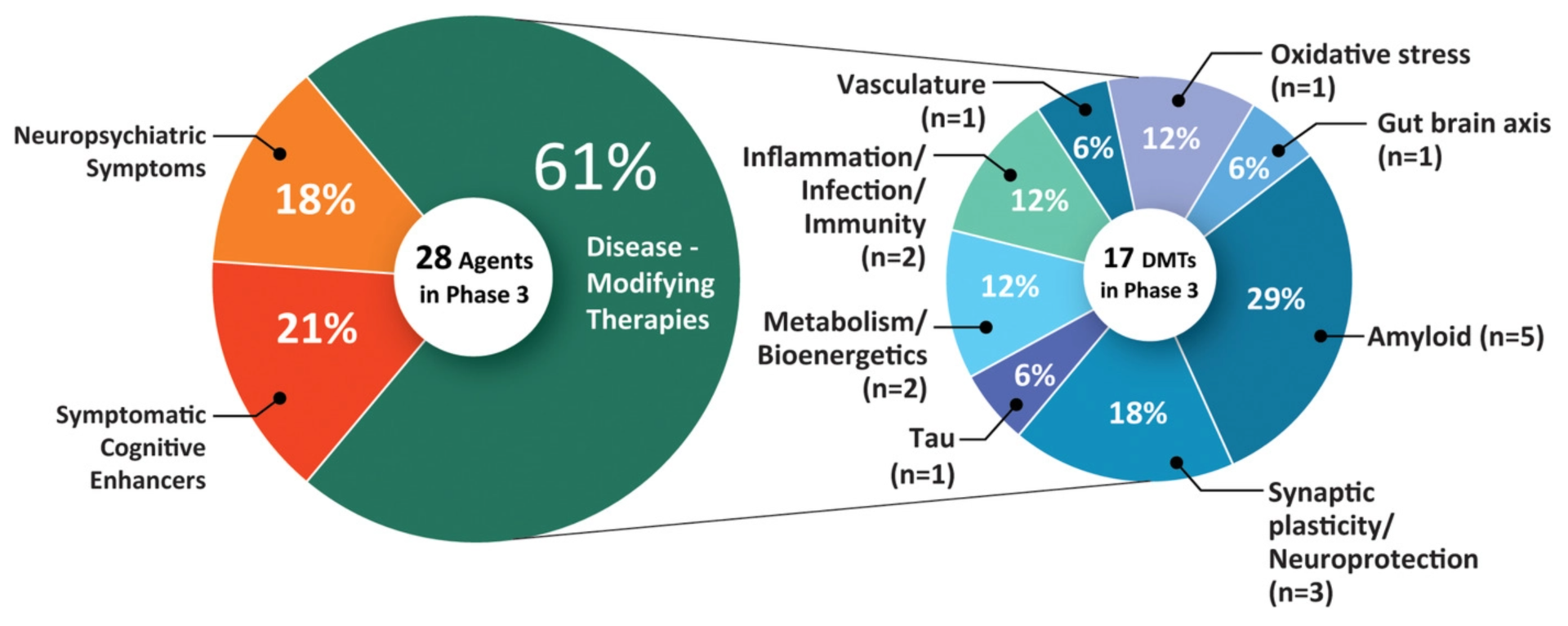 - Phase 3 trials: 28 treatments (including aducanumab)