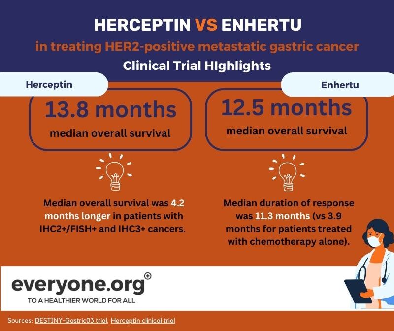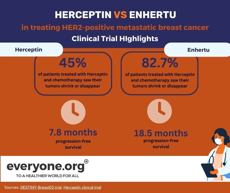 In addition to trastuzumab (an ingredient in both Enhertu and Herceptin), Enhertu also contains the chemotherapy agent deruxtecan. Because of that, Enhertu can deliver chemotherapy directly into the cancer cells, once it attaches to them.